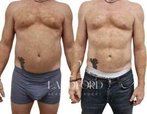 Case Details: 54-year-old patient presenting with excess abdominal and flank fat and a desire for improved definition through the midsection. He underwent Liposuction 360 with ab etching to reduce circumferential fullness and enhance natural muscular contours. At 6 months postoperatively, he demonstrates a more sculpted, defined abdomen with improved waistline contour and a balanced, athletic appearance.